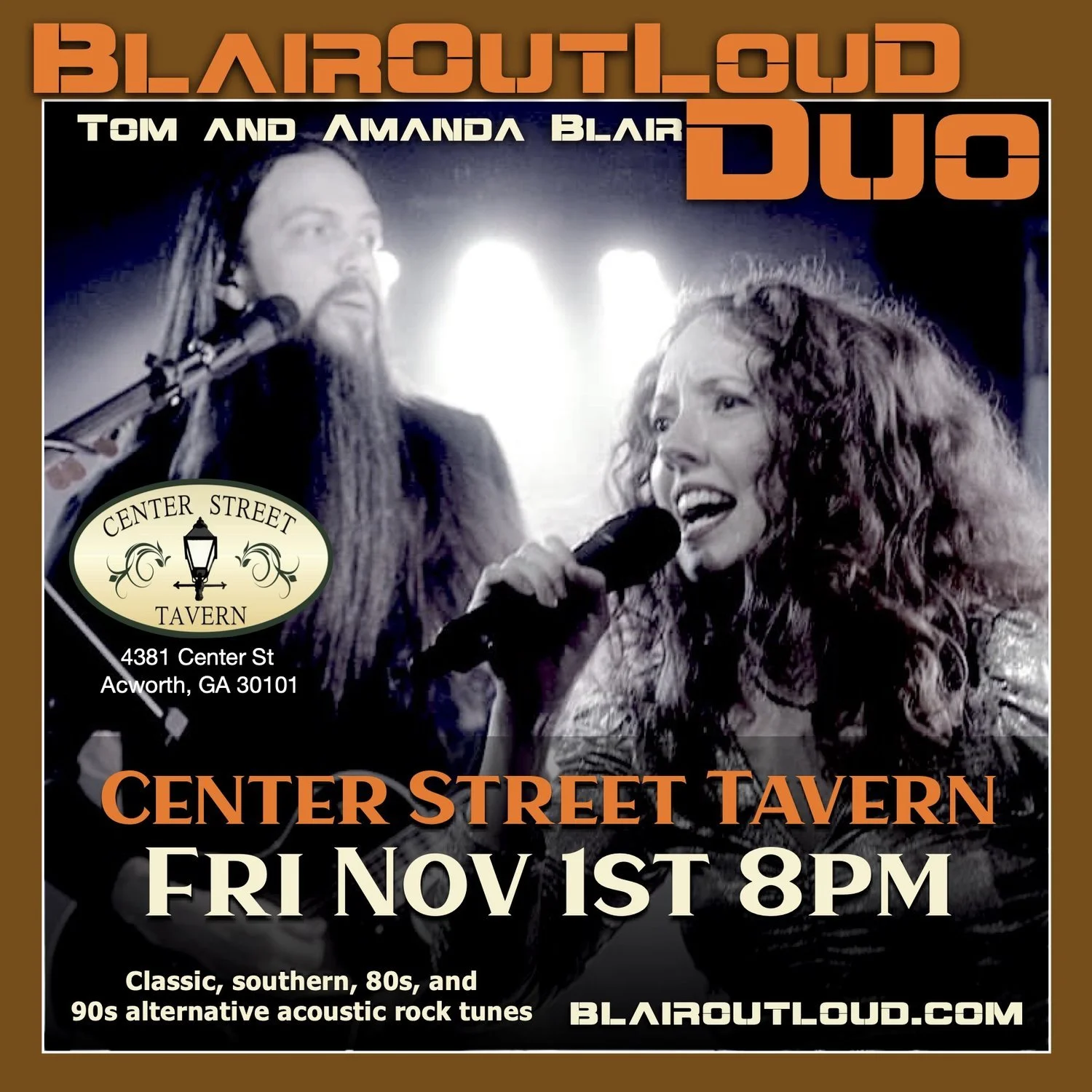 BlairOutLoud DUO at Center Street Tavern Friday, November 1, 2024 8:00 PM 11:00 PM Center Street Tavern 4381 Center Street Acworth, GA, 30102 United States (map) Google Calendar ICS